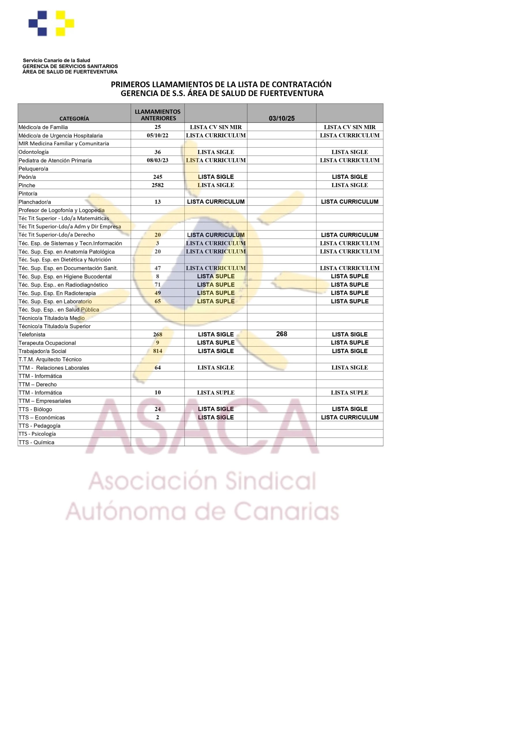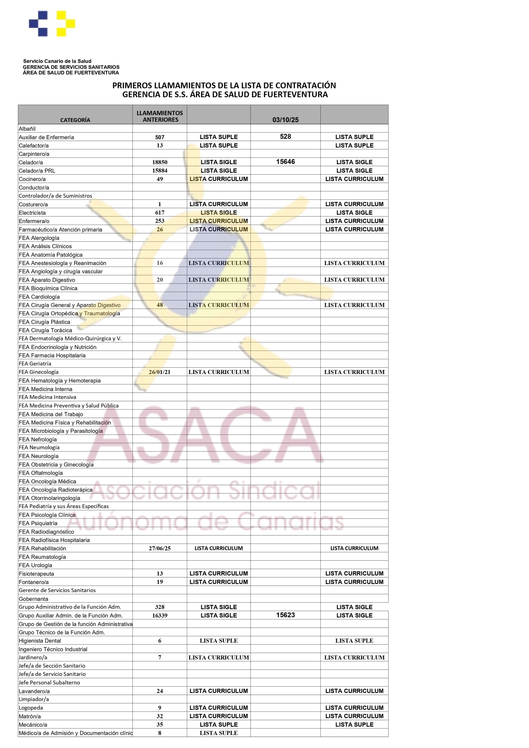 FUERTEVENTURA CONTRATACIÓN PRIMER DISPONIBLE A 03 DE OCTUBRE DE 2025