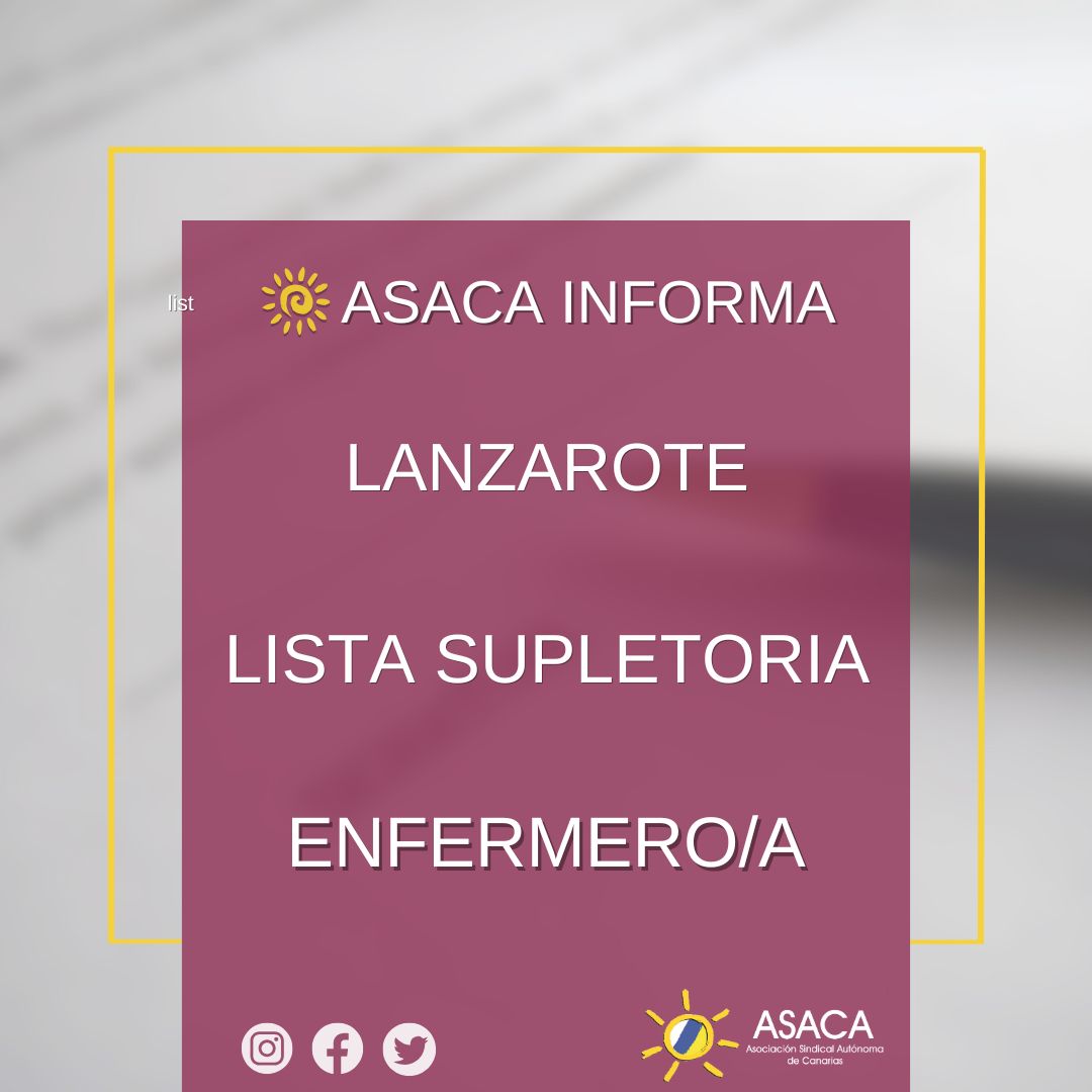 Ayer, 13 de enero de 2026, se ha publicado en el TABLON DE ANUNCIOS DEL SCS la LISTA SUPLETORIA DE ENFERMERA/O, en ejecución de la SENTENCIA N.º 130/2023, correspondiente al proceso selectivo convocado por resolución de 14 de abril de 2023, en la GERENCIA DEL AREA DE SALUD DE LANZAROTE.