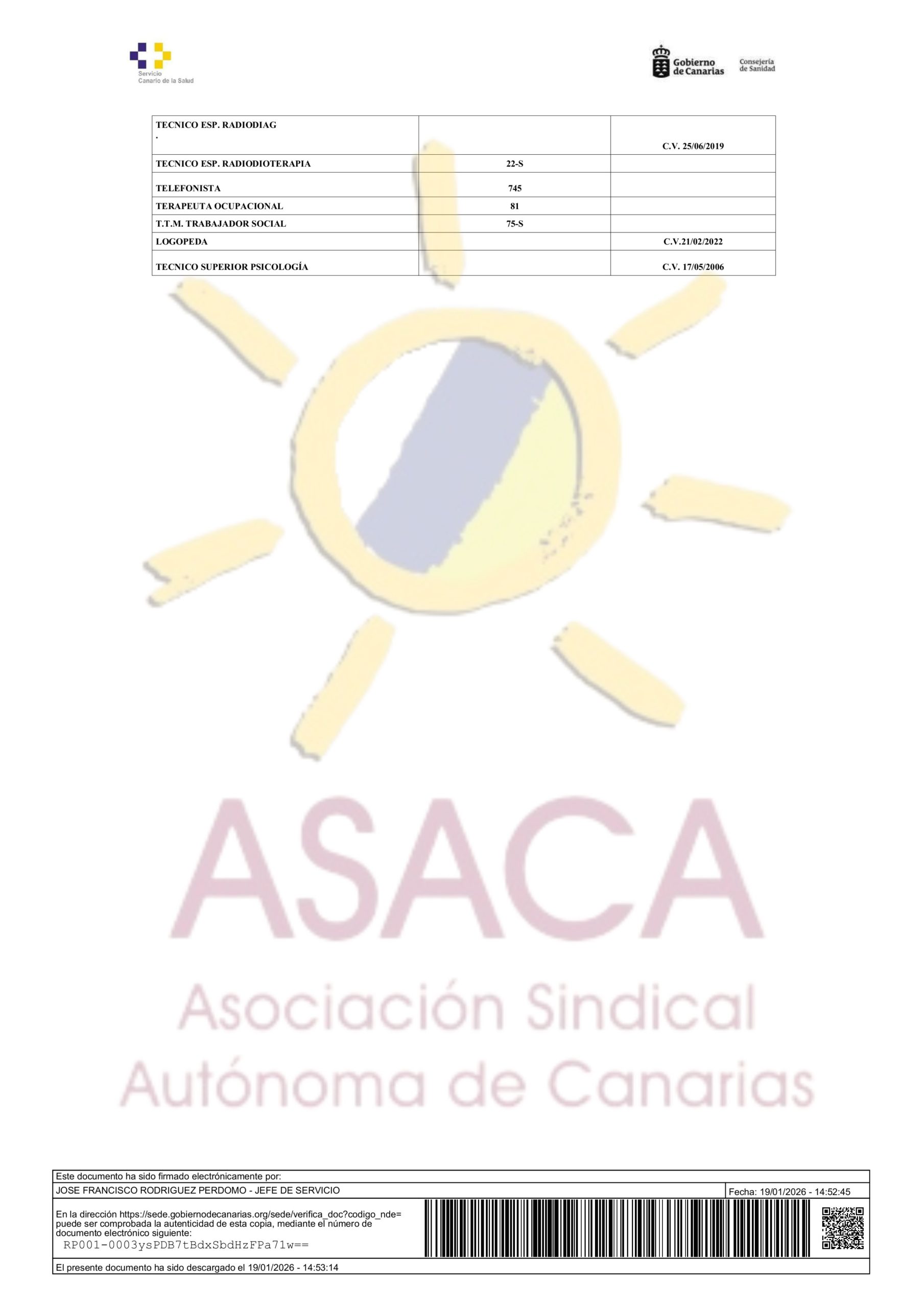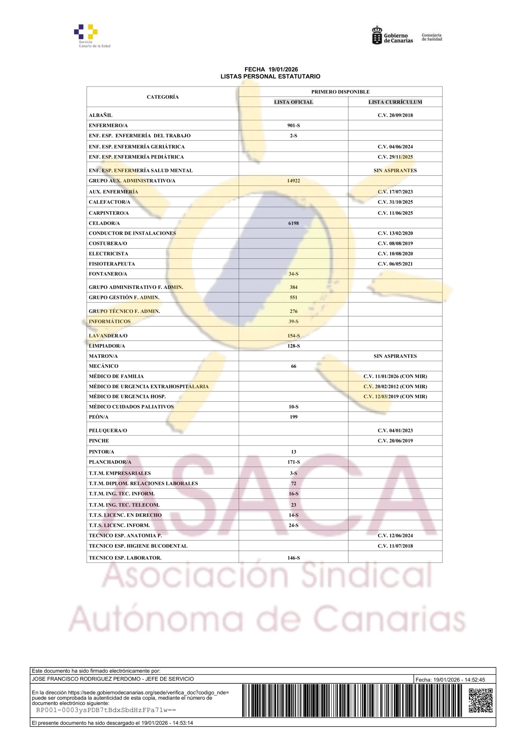 AREA DE SALUD DE LANZAROTE CONTRATACION PRIMER DISPONIBLE A 19 DE ENERO DE 2026