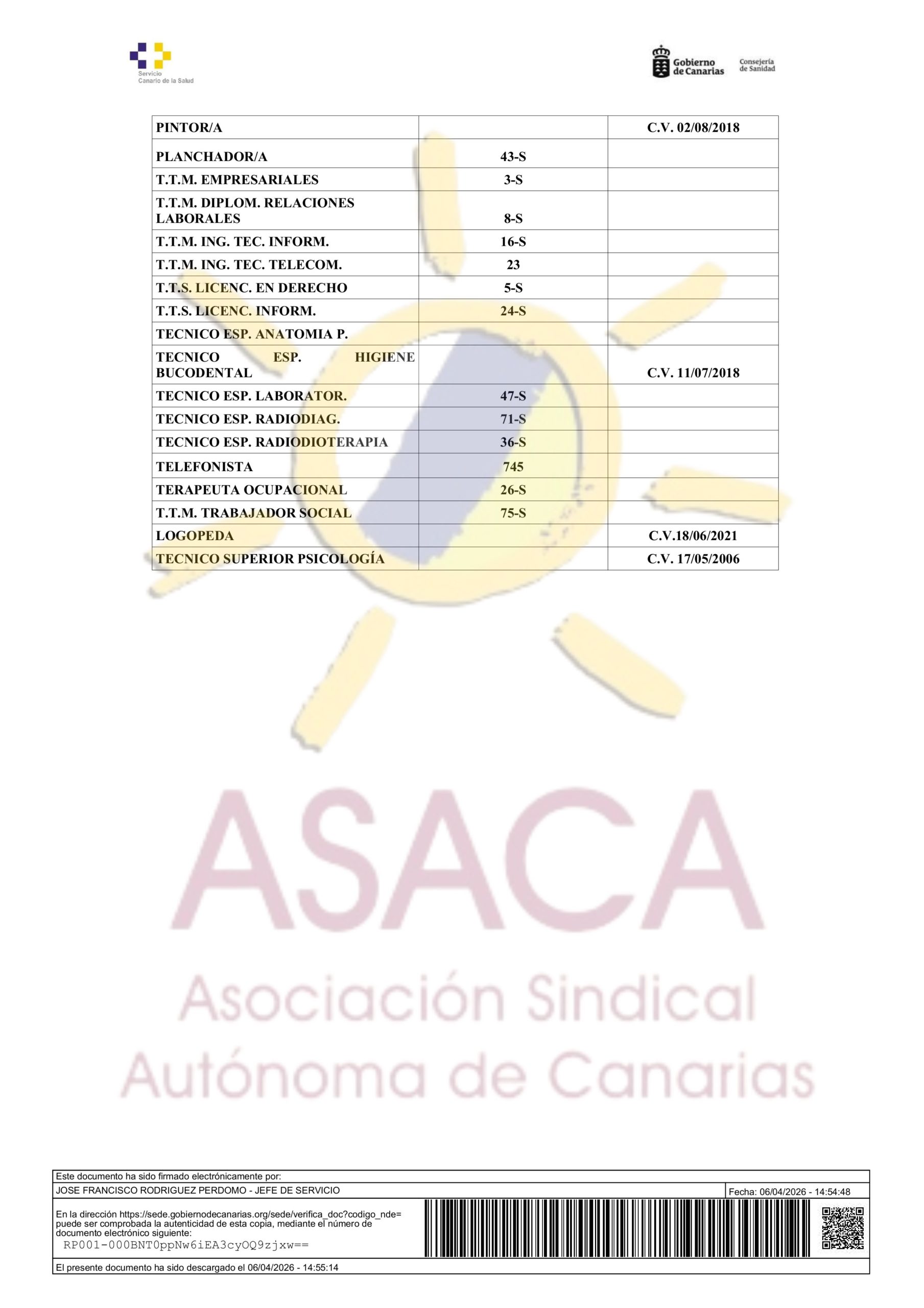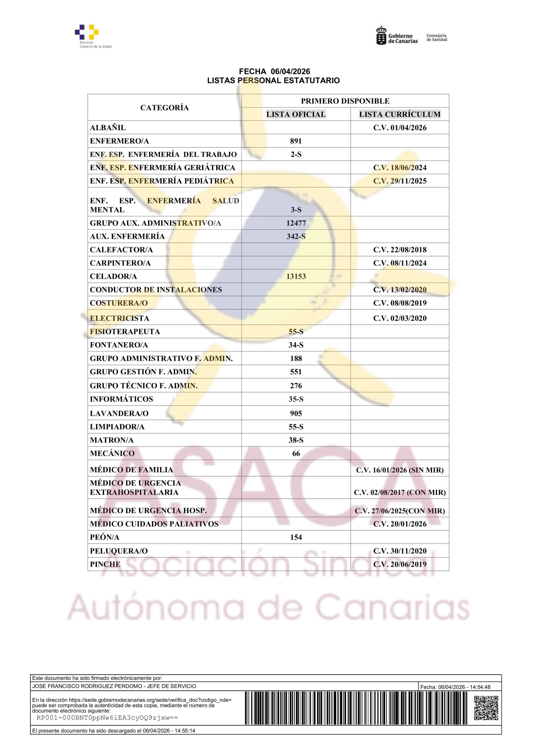 AREA DE SALUD DE LANZAROTE CONTRATACION PRIMER DISPONIBLE A 06 DE ABRIL DE 2026