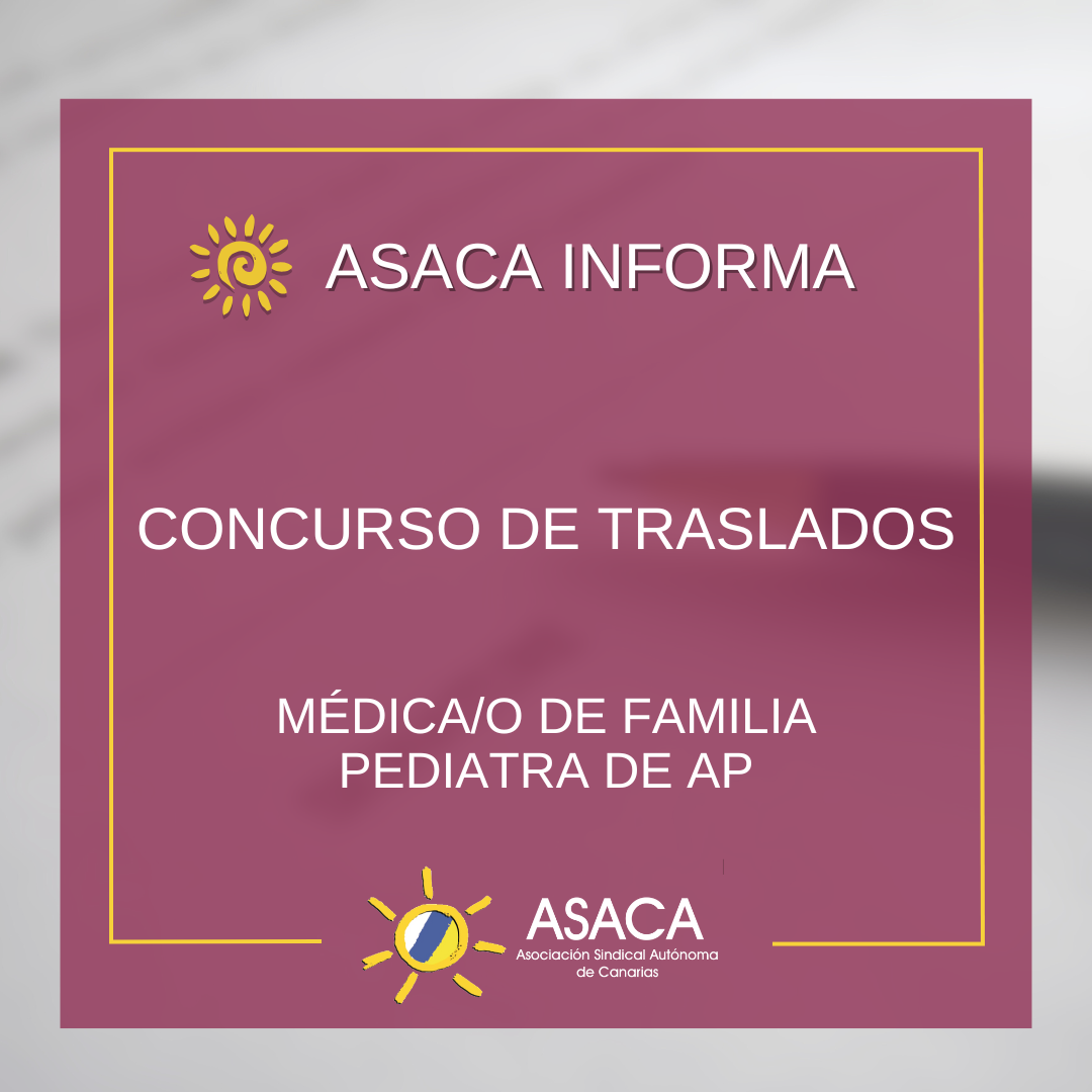 CONCURSO DE TRASLADOS MÉDICO/A DE FAMILIA Y PEDIATRA DE ATENCIÓN PRIMARIA