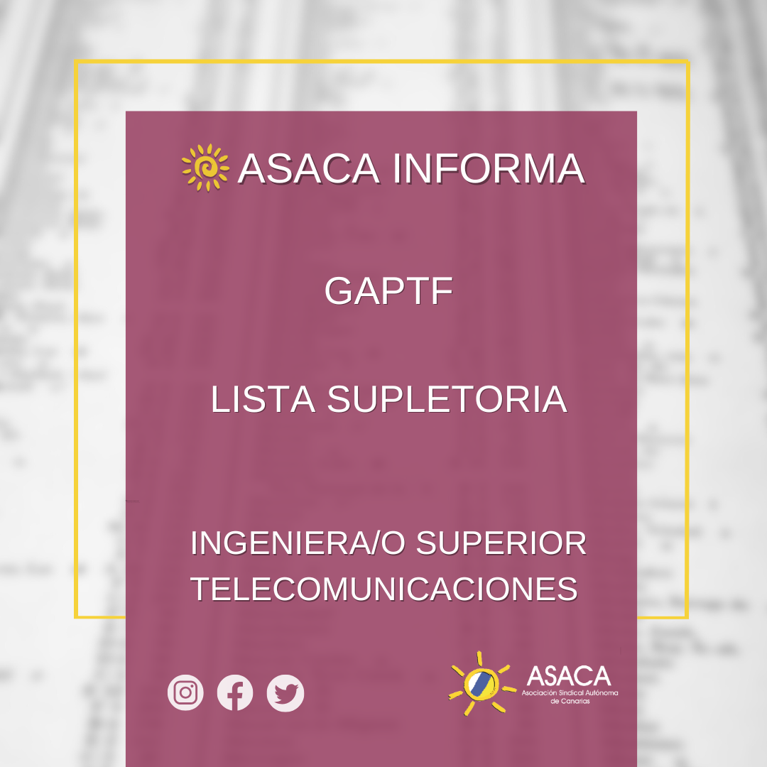 GAPTF LISTA DEFINITIVA SUPLETORIA DE INGENIERA/O SUPERIOR TELECOMUNICACIONES