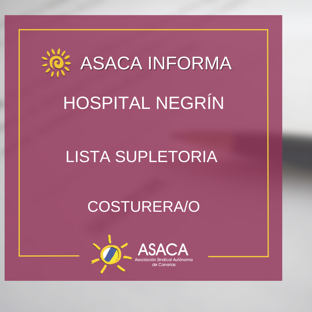 HOSPITAL NEGRÍN RELACIÓN PROVISIONAL DE ASPIRANTES ADMITIDOS Y EXCLUIDOS LISTA SUPLETORIA DE COSTURERA/O