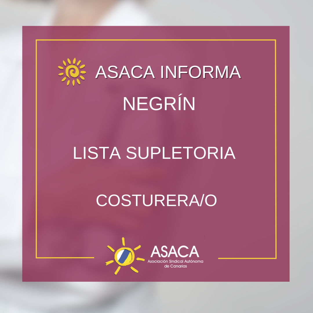 HOSPITAL NEGRÍN CONVOCATORIA URGENTE DE LISTA SUPLETORIA DE COSTURERA/O
