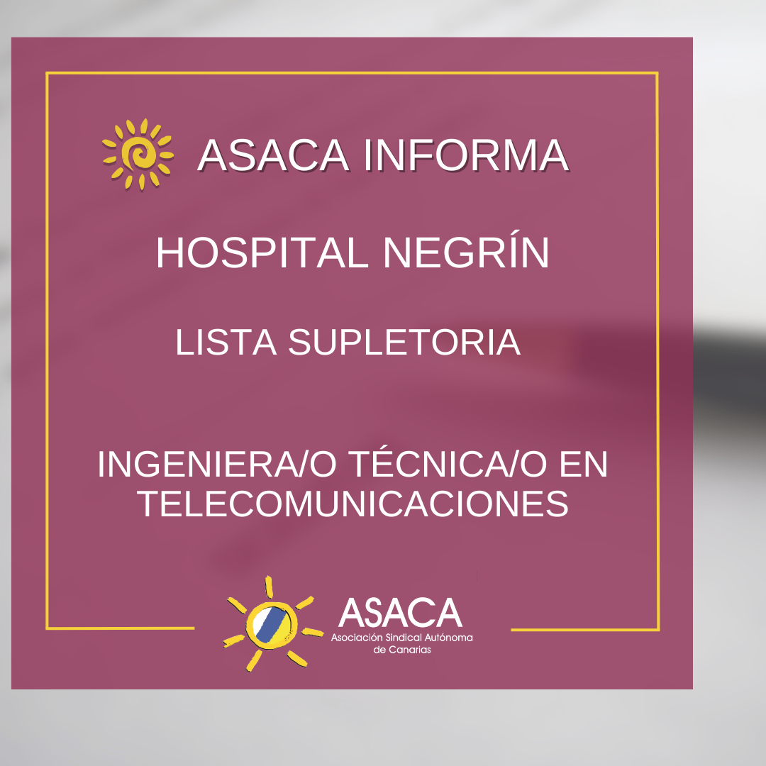 HOSPITAL NEGRÍN CONVOCATORIA URGENTE DE LISTA SUPLETORIA DE INGENIERA/O TÉCNICA/O EN TELECOMUNICACIONES