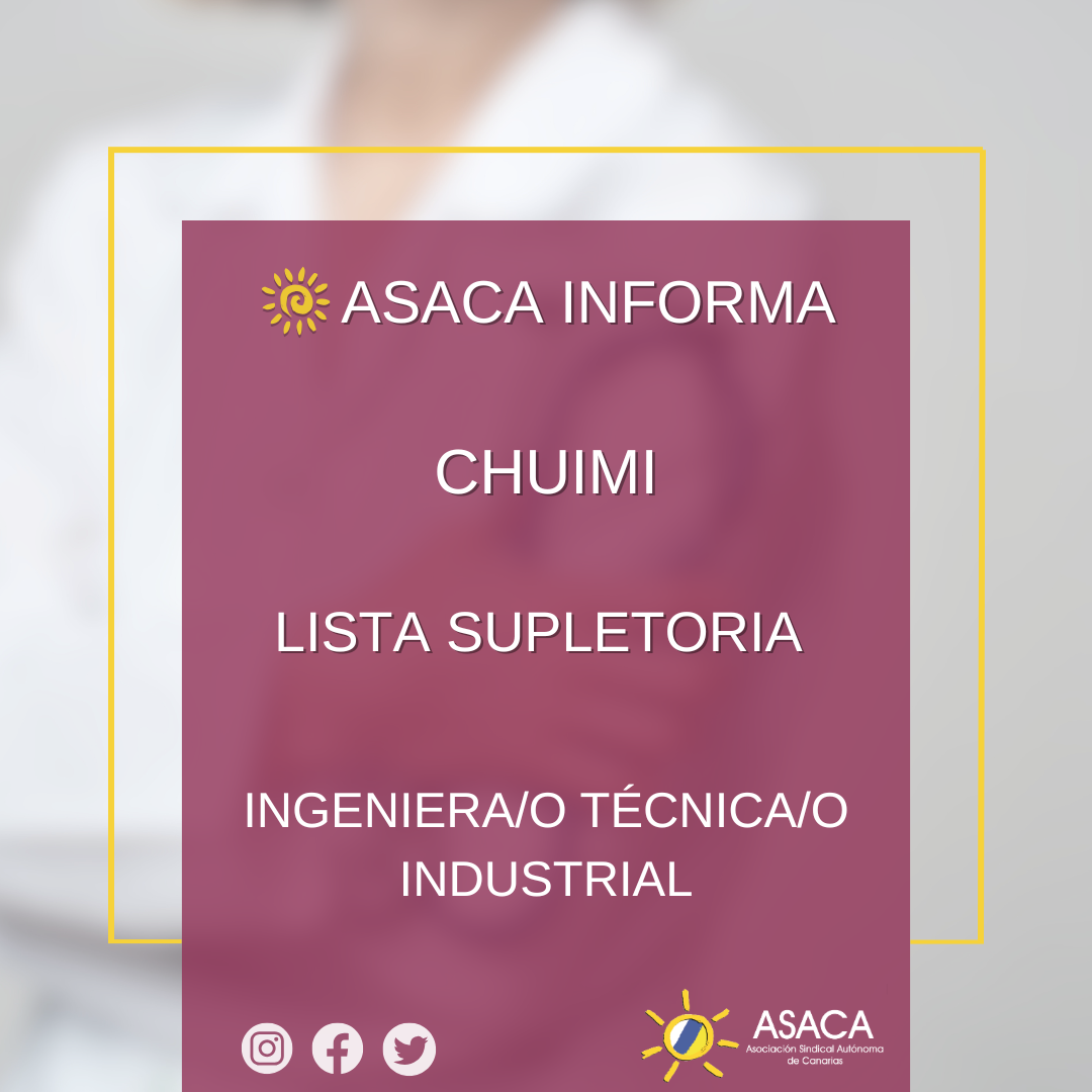 CHUIMI CONVOCATORIA URGENTE DE LISTA SUPLETORIA DE INGENIERA/O TÉCNICA/O INDUSTRIAL
