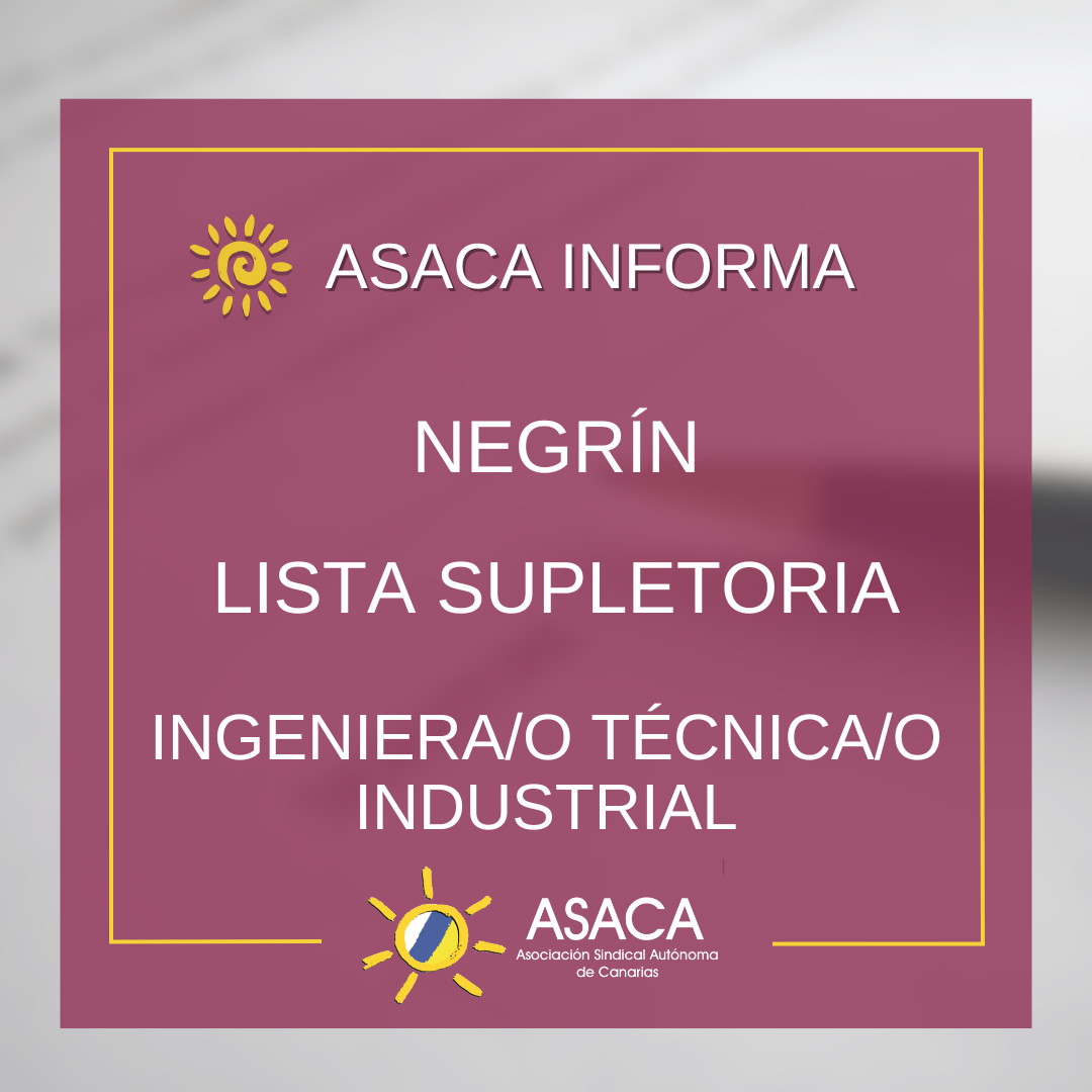 HOSPITAL NEGRIN LISTA SUPLETORIA DEFINITIVA DE INGENIERA/O TÉCNICA/O INDUSTRIAL