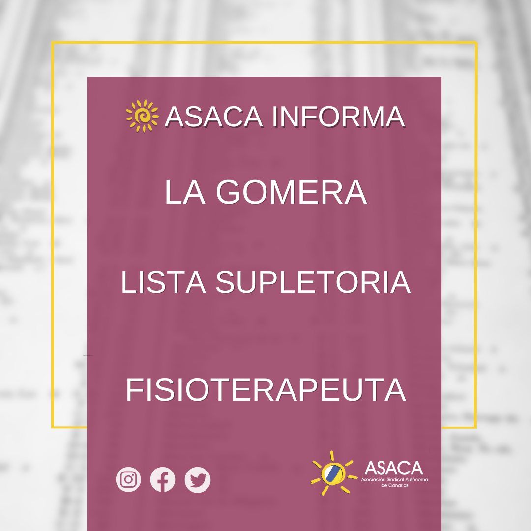 LA GOMERA RELACIÓN DEFINITIVA DE ASPIRANTES ADMITIDOS Y EXCLUIDOS Y LISTA SUPLETORIA PROVISIONAL DE FISIOTERAPEUTA