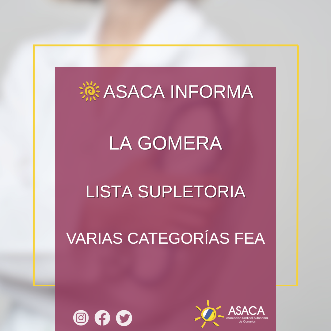 LA GOMERA RELACIÓN DEFINITIVA DE ASPIRANTES ADMITIDOS Y EXCLUIDOS Y LISTA SUPLETORIA PROVISIONAL DE VARIAS CATEGORÍAS FEA