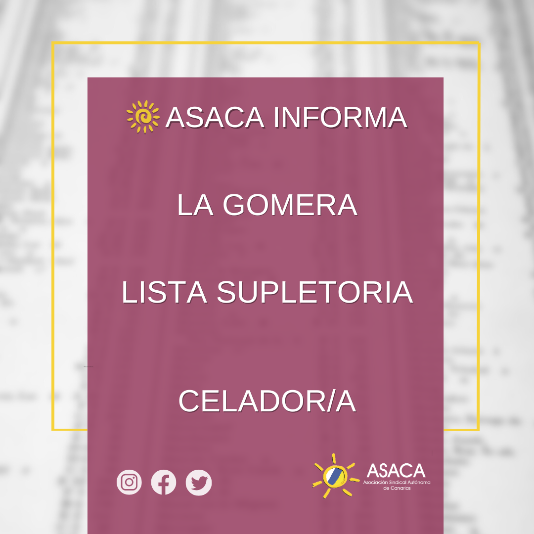 LA GOMERA RELACIÓN PROVISIONAL DE ASPIRANTES ADMITIDOS Y EXCLUIDOS LISTA SUPLETORIA DE CELADOR/A