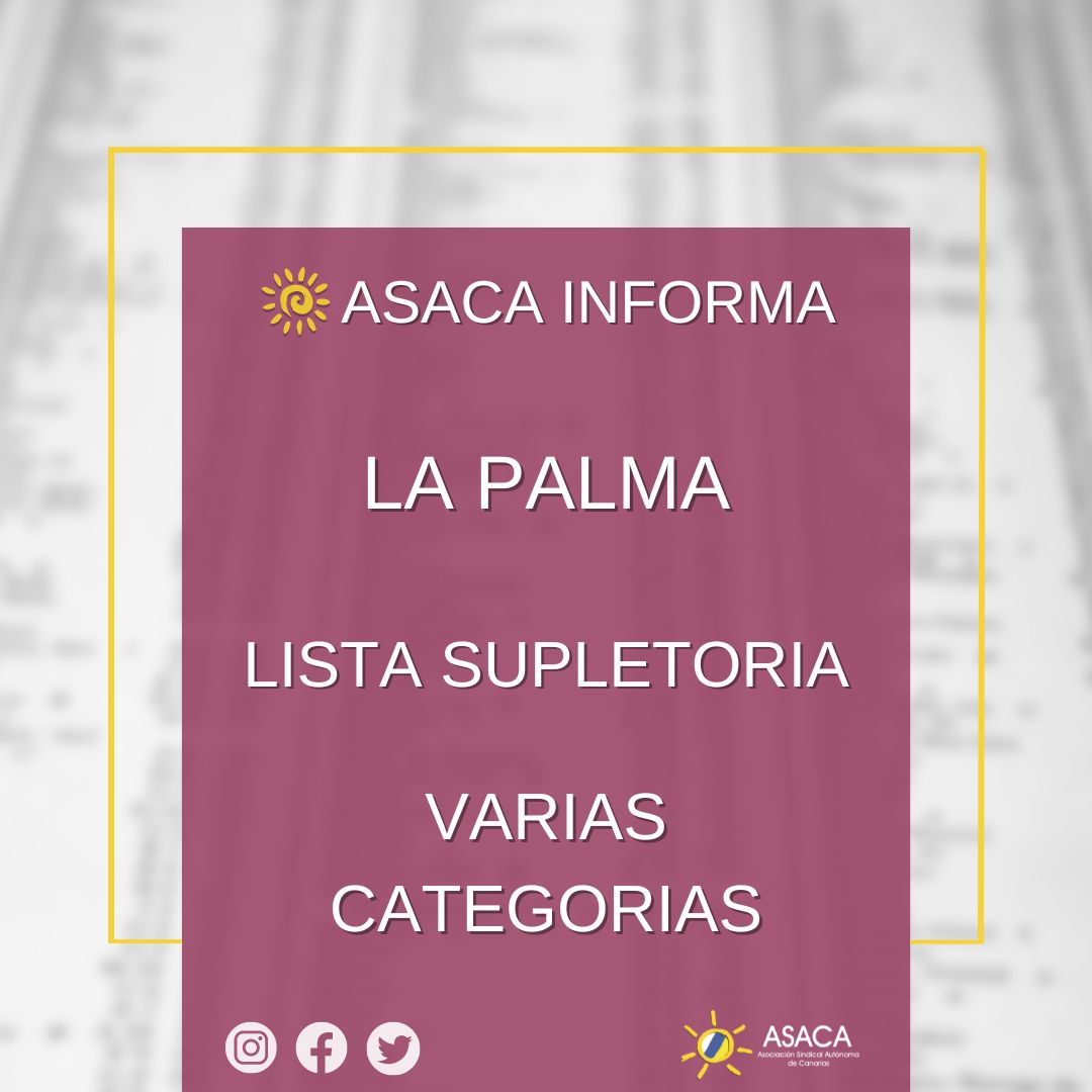 LA PALMA RELACIÓN DEFINITIVA DE ASPIRANTES ADMITIDOS Y EXCLUIDOS Y LISTA SUPLETORIA PROVISIONAL DE VARIAS CATEGORÍAS