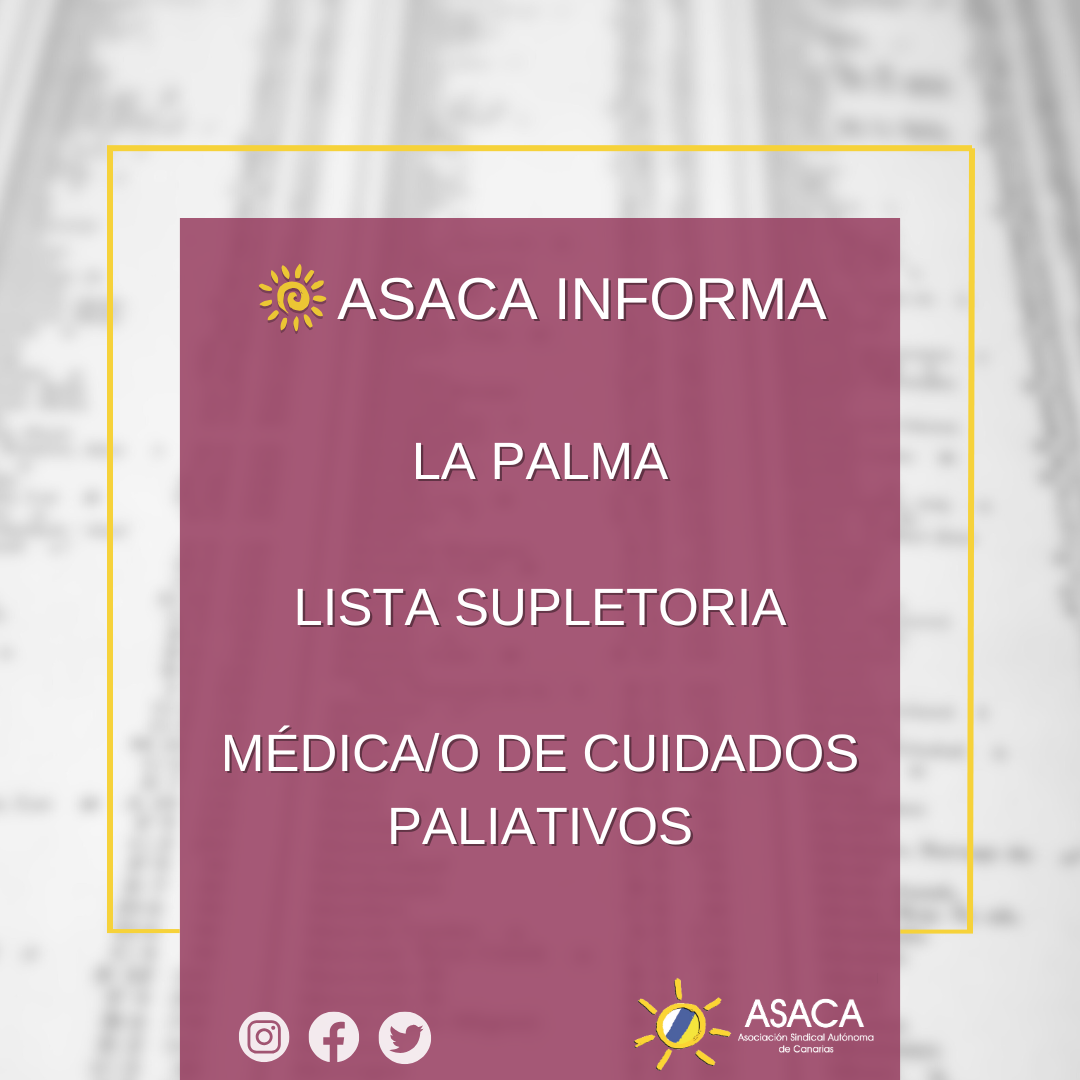 LA PALMA RELACIÓN PROVISIONAL DE ASPIRANTES ADMITIDOS Y EXCLUIDOS LISTA SUPLETORIA DE MÉDICA/O DE CUIDADOS PALIATIVOS