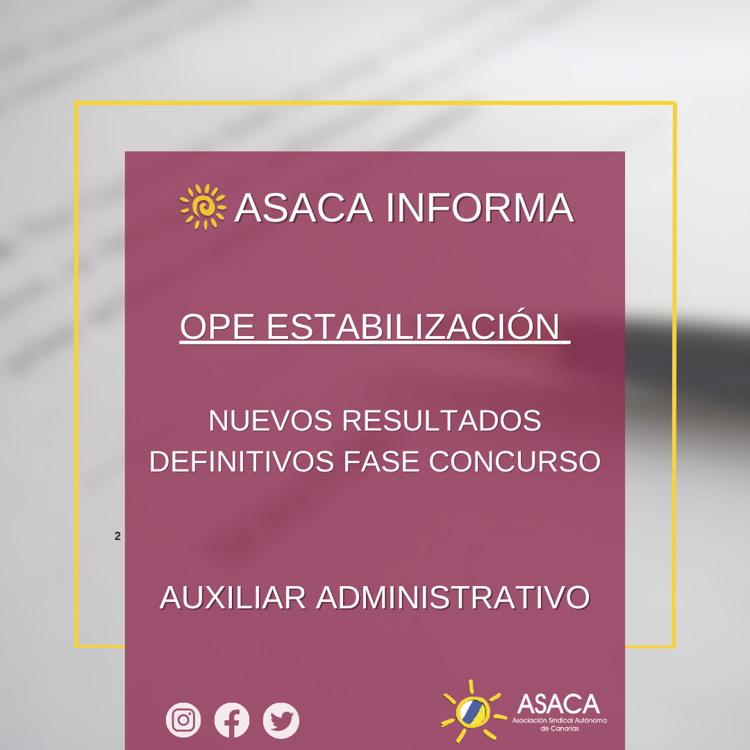 OPE ESTABILIZACIÓN NUEVOS RESULTADOS DEFINITIVOS FASE CONCURSO GRUPO AUXILIAR ADMINISTRATIVO DE LA FUNCIÓN ADMINISTRATIVA