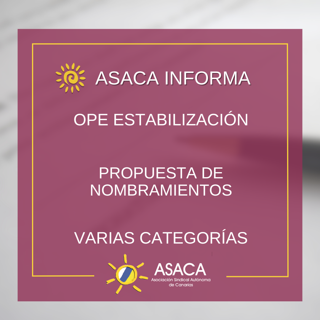 OPE PROCESO SELECTIVO EXCEPCIONAL DE ESTABILIZACIÓN PROPUESTA DE NOMBRAMIENTOS VARIAS CATEGORÍAS