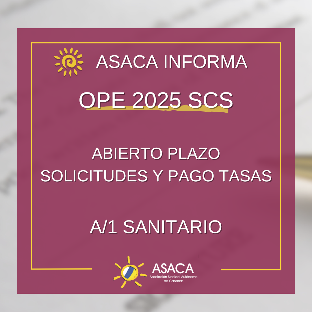 PLAZO DE PRESENTACIÓN DE SOLICITUDES DE PARTICIPACIÓN PAGO DE TASAS OPE 2025 SCS – CATEGORÍAS A1 SANITARIO