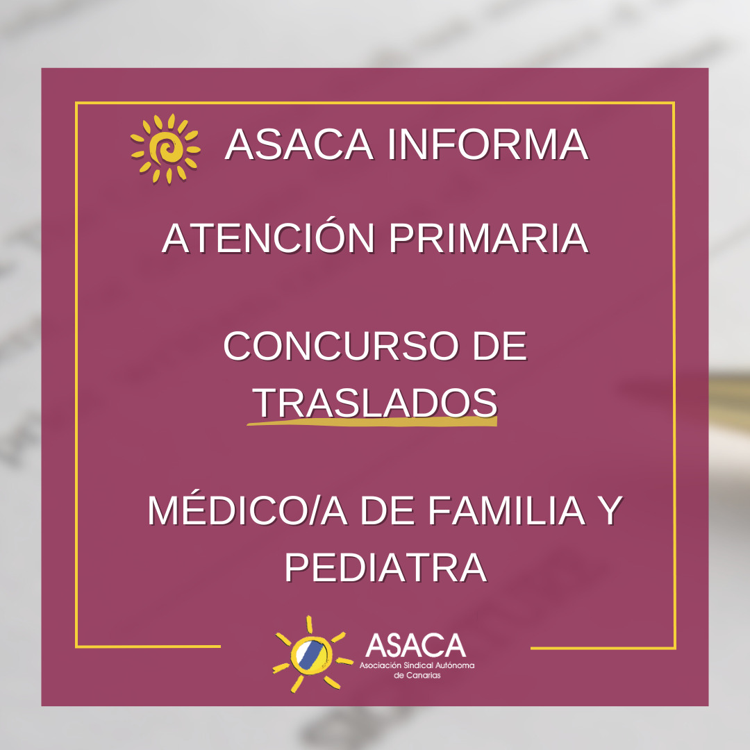 Les informamos que hoy 01/10/2025 se ha publicado Resolución de fecha 1 de julio de 2025, por la que se convoca y modifica el 𝗖𝗢𝗡𝗖𝗨𝗥𝗦𝗢 𝗗𝗘 𝗧𝗥𝗔𝗦𝗟𝗔𝗗𝗢𝗦 𝗩𝗢𝗟𝗨𝗡𝗧𝗔𝗥𝗜𝗢 para la provisión de plazas básicas de las categorías de 𝗠𝗲́𝗱𝗶𝗰𝗼/𝗮 𝗱𝗲 𝗙𝗮𝗺𝗶𝗹𝗶𝗮 y 𝗣𝗲𝗱𝗶𝗮𝘁𝗿𝗮 𝗱𝗲 𝗘𝗾𝘂𝗶𝗽𝗼 𝗱𝗲 𝗔𝘁𝗲𝗻𝗰𝗶𝗼́𝗻 𝗣𝗿𝗶𝗺𝗮𝗿𝗶𝗮 del Servicio Canario de la Salud.